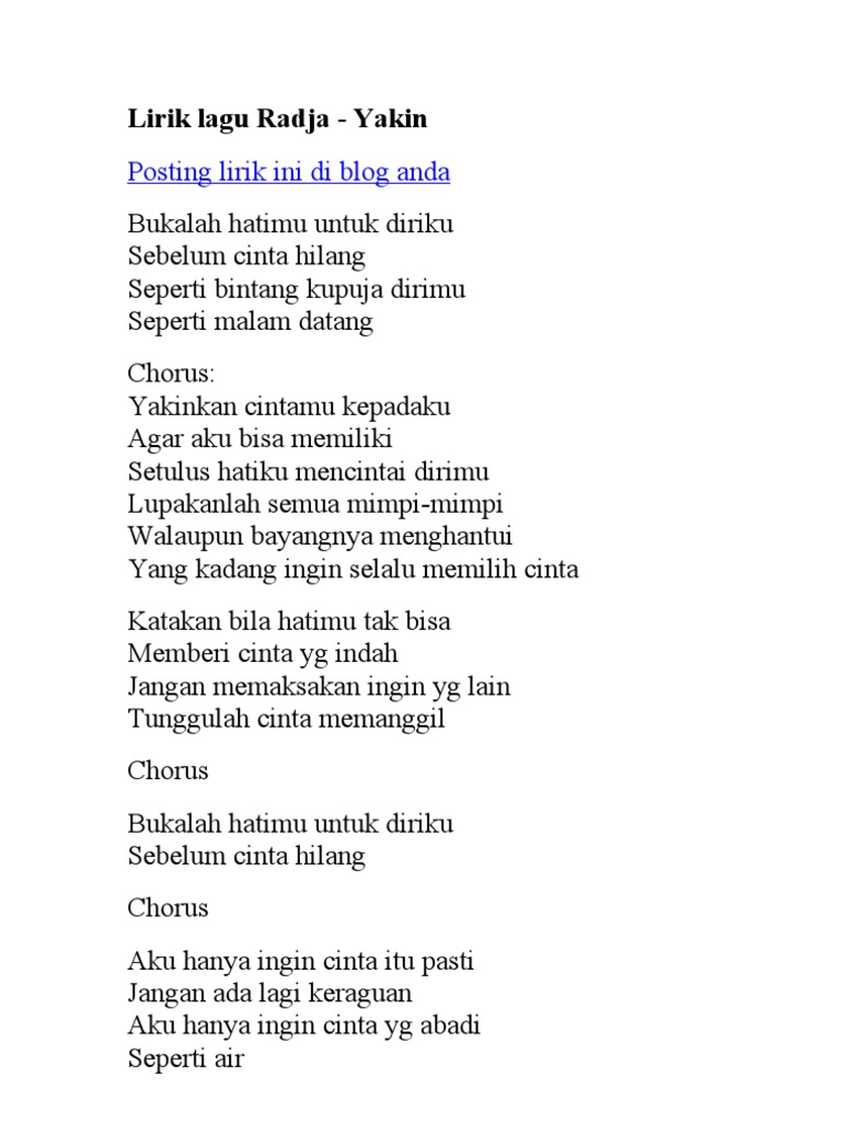 Berikut lirik lagu lengkap Aku Hanya Bisa Berkata Sayang Syahiba Saufa. Engkau hanya bisu melihat aku. Yesus pasti menolong yesus pasti menolong yesus pasti menolong dia.